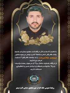 بسم‌الله الرحمن الرحیمبا قلبی سرشار از اندوه و دلی آکنده از درد،فقدان یار دیرین و همراه همیشگی خانه کارگر جناب آقای محمد غلامزاده عضو پرتلاش و فداکار هیأت اجرایی خانه کارگر شهرستانهای لامرد و مهر را تسلیت عرض می‌نماییم.او که از روزهای نخستین شکل‌گیری خانه کارگر ،همچون ستونی استوار و دلسوز در کنار ما بود، با جان و دل برای اعتلای حقوق کارگران و خدمت به مردم تلاش کرد و هیچگاه از پای ننشست.حضور پر محبت و صداقت بی دریغش، همواره چراغ راه ما بود و رفتنش جای خالی بزرگی در میان ما به جا گذاشت.ایشان سالیان سال با خلوص نیت، همت بلند و روحیه‌ای ایثارگرانه، در راه‌اندازی و پایداری خانه کارگر منطقه، تلاش بی‌وقفه‌ای داشتند و همواره مدافع حقوق کارگران و تلاشگران عرصه تولید و کار بودند.یاد و خاطره آن مرحوم همواره در دل کارگران و همکارانش زنده خواهد ماند و خدمات ارزشمندش هیچ‌گاه فراموش نخواهد شد.اینجانب ضمن ابراز همدردی صمیمانه، این ضایعه دردناک را به خانواده محترم ایشان، جامعه کارگری و همکاران خانه کارگر تسلیت عرض نموده و از درگاه خداوند متعال برای آن عزیز سفر کرده، رحمت واسعه الهی و برای بازماندگان صبر و سلامتی مسئلت دارم.